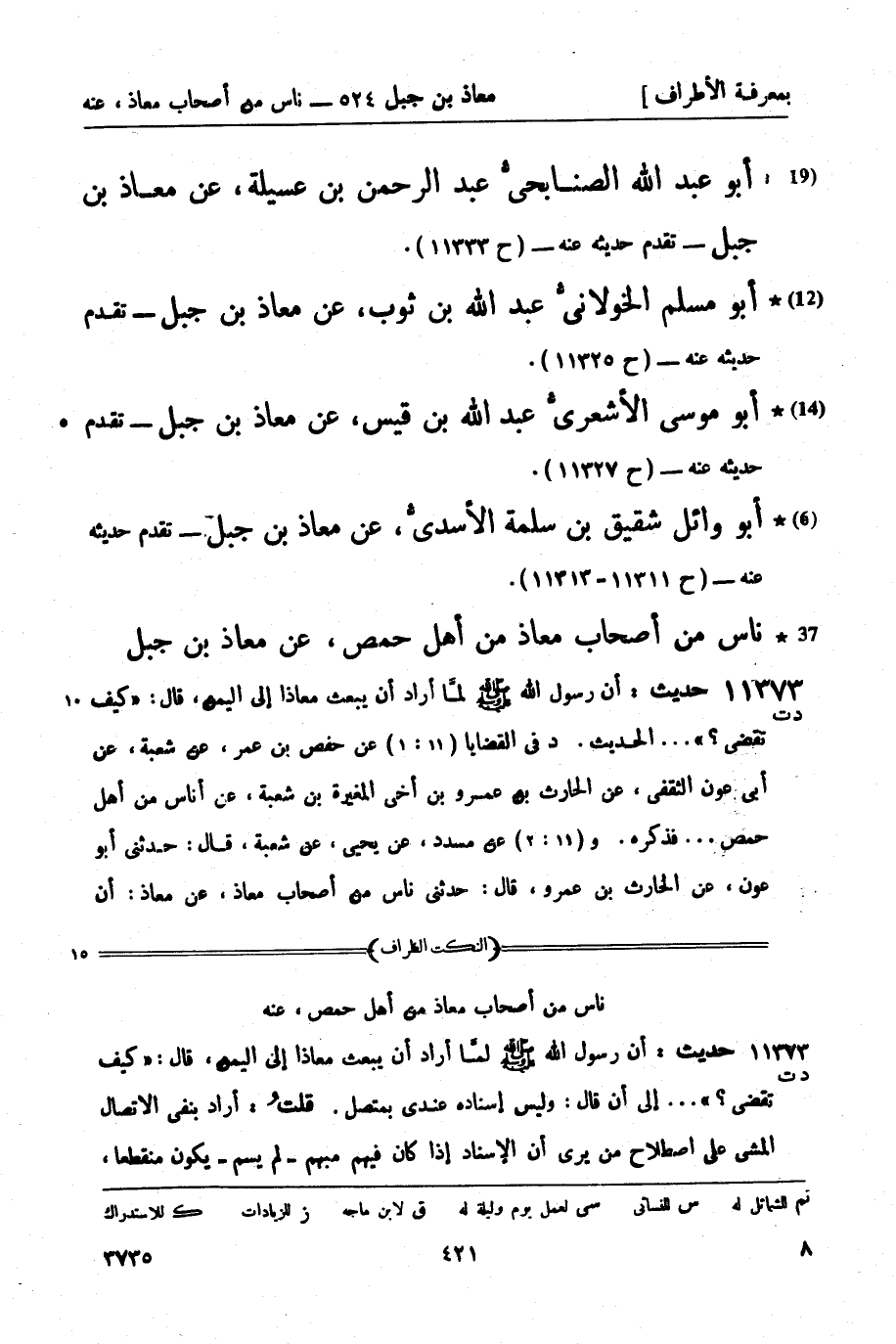 (14) أبو موسى الأشعريُّ عبد الله بن قيس، عن معاذ بن جبل - تقدَّم حديثه عنه - (ح 11327) .