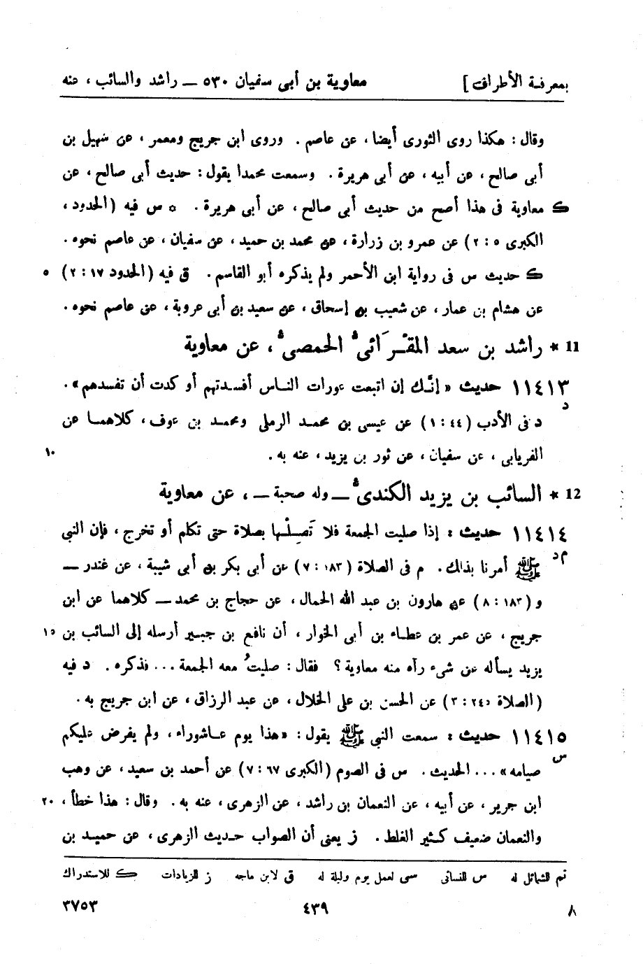 11415 -[س] حديث: سمعت النبيّ صَلَّى اللَّهُ عَلَيْهِ وَسَلَّمَ يقول: هذا يوم عاشوراء، ولم يفرض عليكم صيامه ... الحديث. س في الصوم (الكبرى 67: 7) عن أحمد بن سعيد، عن وهب بن جرير، عن أبيه، عن النعمان بن راشد، عن الزهري , عنه به. وقال: هذا خطأ، والنعمان ضعيف كثير الغلط. ز يعني أن الصواب حديث الزهري، عن حميد بن -[440]- عبد الرحمن بن عوف، عن معاوية - (ح 11408) .