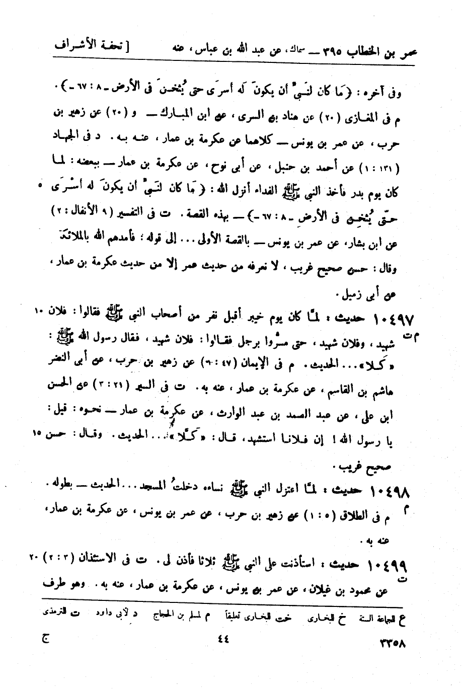 10499 -[ت] حديث: استأذنت على النبيّ صَلَّى اللَّهُ عَلَيْهِ وَسَلَّمَ ثلاثاً فأذن لي. (ت) في الاستئذان (3: 2) عن محمود بن غيلان، عن عمر بن يونس، عن عكرمة بن عمار، عنه به. وهو طرف -[45]- من الحديث الذي قبله (ح 10498) . وقال: حسن غريب.