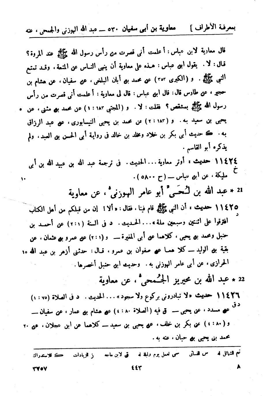 11424 -[خ] حديث: أوتر معاوية ... الحديث. في ترجمة عبد الله بن عبيد الله بن أبي مليكة، عن ابن عباس - (ح 5800) .