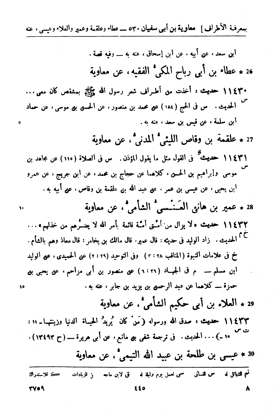 11433 -[ت س] حديث: صدق الله ورسوله مَنْ كان يُريدُ الحياة الدنيا وزينتها (11: 15) ... الحديث. في ترجمة شفي بن ماتع، عن أبي هريرة - (ح 13493) .