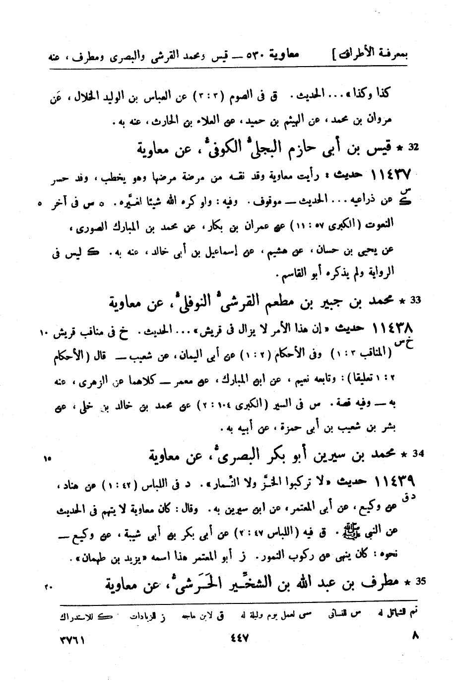 قيس بن أبي حازم البجليُّ الكوفيُّ، عن معاوية