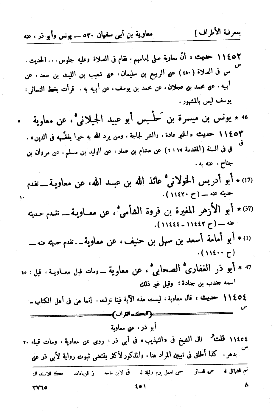 (17) أبو إدريس الخولانيُّ عائذ الله بن عبد الله، عن معاوية - تقدَّم حديثه عنه - (ح 11420) .