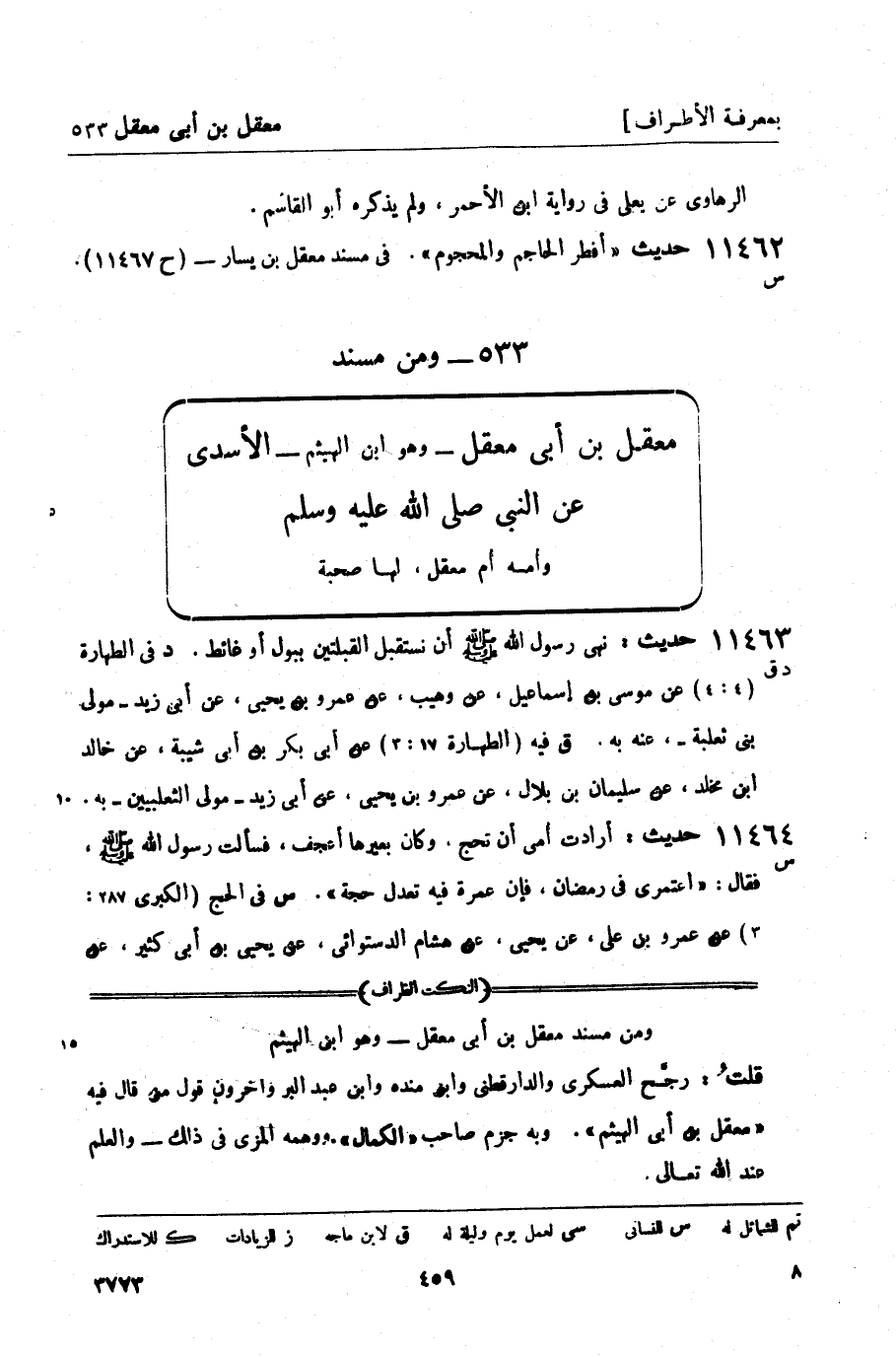 11462 - حديث أفطر الحاجم والمحجوم. في مسند معقل بن يسار - (ح 11467) .