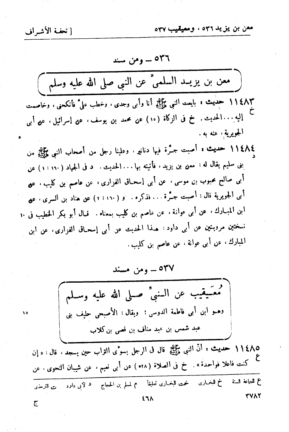 ومن مسند مُعَيقيب عن النبي صَلَّى اللَّهُ عَلَيْهِ وَسَلَّمَ وهو ابن أبي فاطمة الدوسي؛ ويقال: الأصبحي حليف بني عبد شمس بن عبد مناف بن قصي بن كلاب