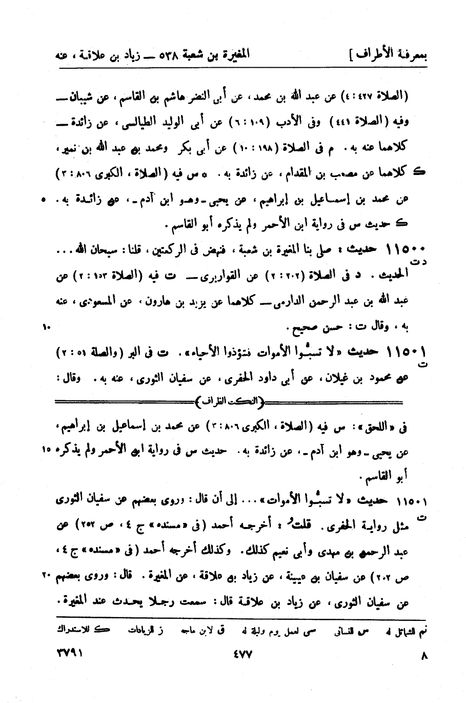 11501 -[ت] حديث لا تسبُّوا الأموات فتؤذوا الأحياء. ت في البر (والصلة 51: 2) عن محمود بن غيلان، عن أبي داود الحفري، عن سفيان الثوري , عنه به. وقال: -[478]- اختلف أصحاب سفيان في هذا، فروى بعضهم مثل رواية الحفري. وروى بعضهم عن سفيان، عن زياد بن علاقة قال: سمعت رجلاً يحدِّث عند المغيرة بن شعبة عن النبيّ صَلَّى اللَّهُ عَلَيْهِ وَسَلَّمَ نحوه.