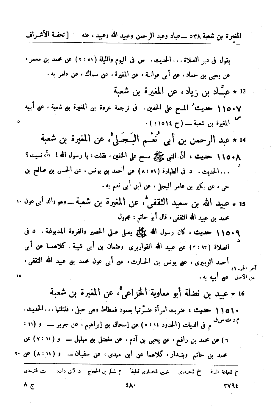 11507 - حديثُ المسح على الخفين. في ترجمة عروة بن المغيرة بن شعبة، عن أبيه المغيرة بن شعبة - (ح 11514) .