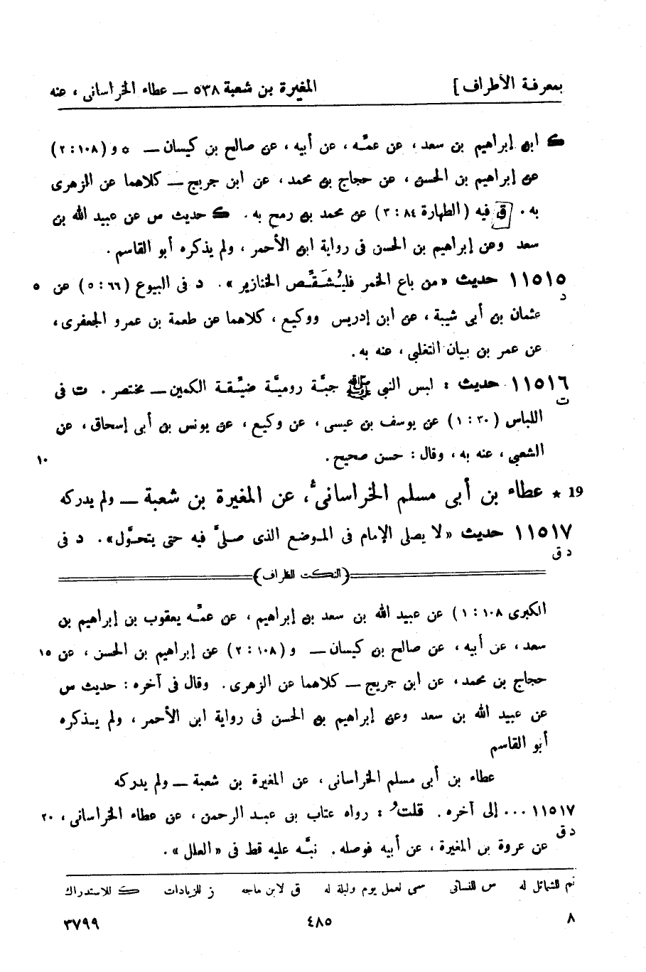 11517 -[د ق] حديث لا يصلي الإمام في الموضع الذي صلَّى فيه حتى يتحوَّل. د في -[486]- الصلاة (73) عن أبي توبة الربيع بن نافع، عن عبد العزيز بن عبد الملك القرشي , عنه به. وقال عطاء لم يدرك المغيرة. ق فيه (الصلاة 242: 2) عن محمد بن يحيى، عن قتيبة، عن ابن وهب - (و- 242: 3 - عن كثير بن عبيد، عن بقية، عن أبي عبد الرحمن التيمي - كلاهما) عن عثمان بن عطاء، عن أبيه نحوه.