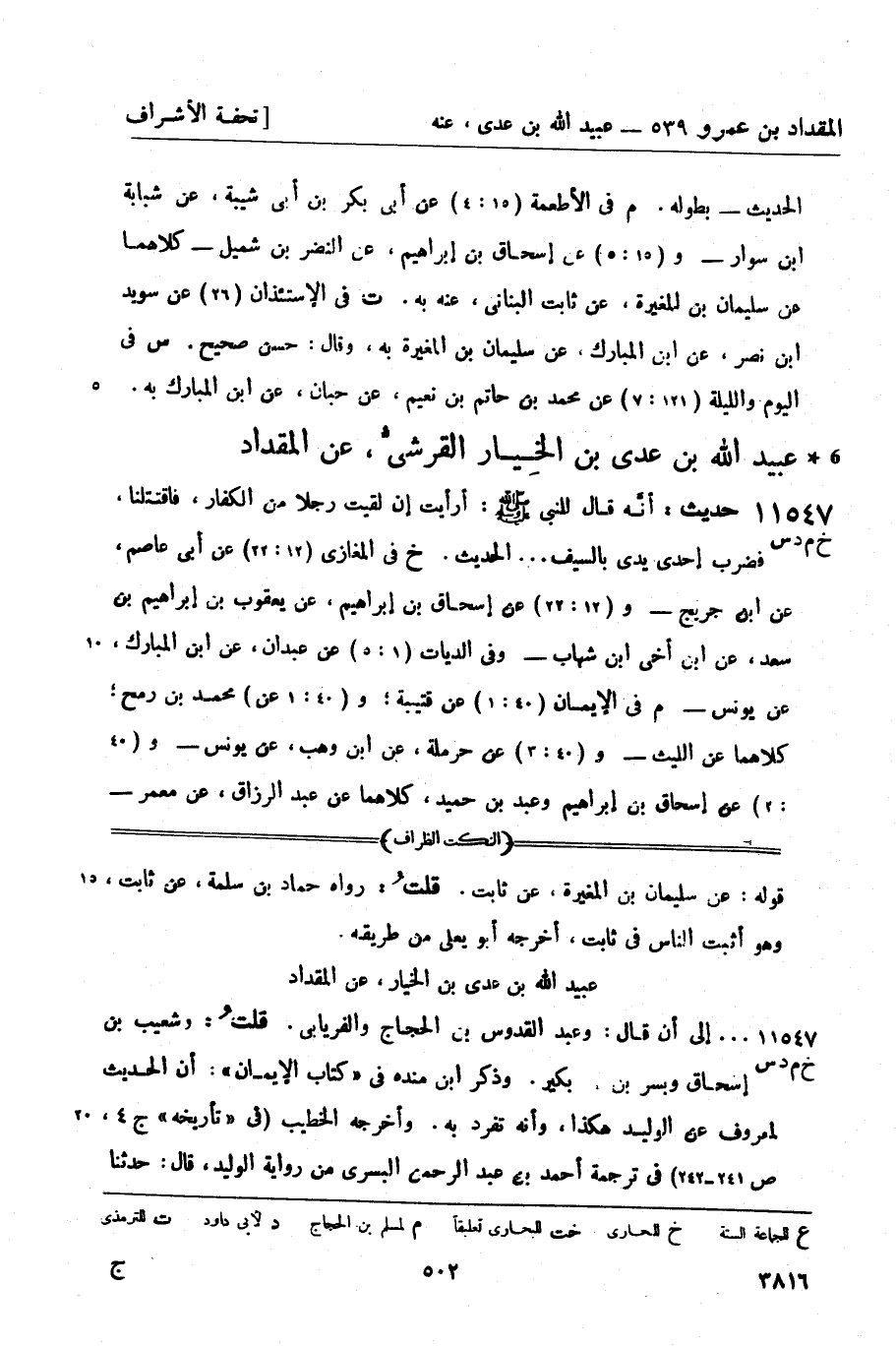 11547 -[خ م د س] حديث: أنَّه قال للنبيّ صَلَّى اللَّهُ عَلَيْهِ وَسَلَّمَ: أرأيت إن لقيت رجلاً من الكفار، فاقتتلنا، فضرب إحدى يدي بالسيف ... الحديث.. خ في المغازي (12: 22) عن أبي عاصم، عن ابن جريج - و (12: 22) عن إسحاق بن إبراهيم، عن يعقوب بن إبراهيم بن سعد، عن ابن أخي ابن شهاب - وفي الديات (1: 5) عن عبدان، عن ابن المبارك، عن يونس - م في الإيمان (40: 1) عن قتيبة؛ و (40: 1، عن) محمد بن رمح؛ كلاهما عن الليث - و (40: 3) عن حرملة، عن ابن وهب، عن يونس - و (40: 2) عن إسحاق بن إبراهيم وعبد بن حميد، كلاهما عن عبد الرزاق، عن معمر -[503]- و (40: 2) عن محمد بن رافع، عن عبد الرزاق، عن ابن جريج - و (40: 2) عن إسحاق بن موسى، عن الوليد بن مسلم، عن الأوزاعي - ستتهم عن الزهري، عن عطاء بن يزيد، عنه به. د في الجهاد (104: 5) س في السير (الكبرى 9) جميعاً عن قتيبة به. قال أبو مسعود: ليس هذا بمعروف عن الوليد بهذا الإسناد، وفيه خلاف عن الوليد وعن الأوزاعي. وقال الحاكم أبو عبد الله: لم يسمعه الأوزاعي من الزهري، بينهما إبراهيم بن مرة. هكذا رواه أصحاب الأوزاعي أبو إسحاق الفزاري والوليد بن مزيد ومحمد بن حميد وعمرو بن أبي سلمة وعبد القدوس بن الججاج والفريابي. وقال أبو القاسم: رواه بعضهم عن إبراهيم بن مرة، عن الزهري - فلم يذكر عطاء. ورواه أبو إسحاق الفزاري، عن الأوزاعي، عن إبراهيم ... فذكره.