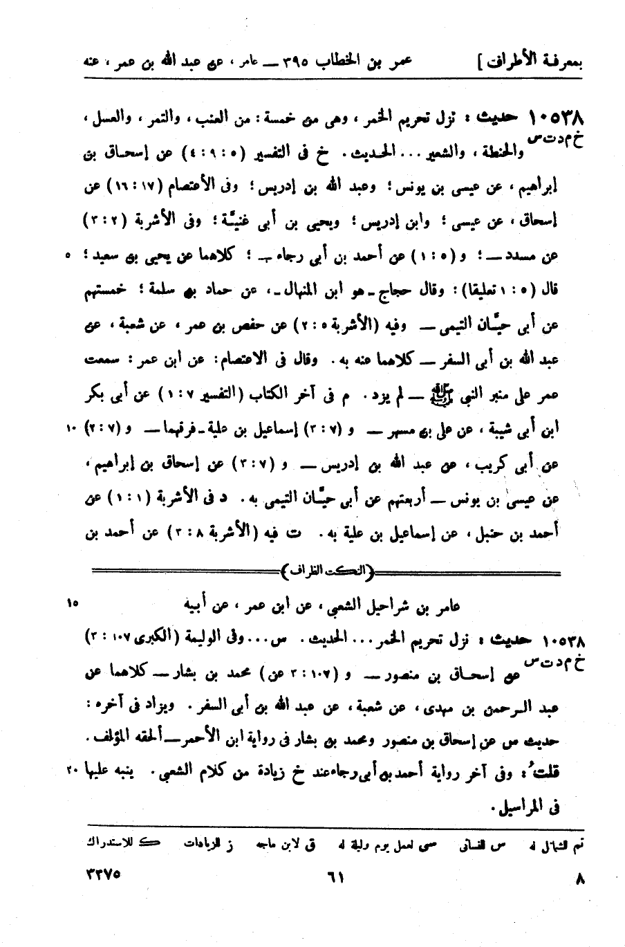 ت فيه (الأشربة 8: 3) عن أحمد بن -[62]- منيع، عن عبد الله بن إدريس به. وقال: هذا أصح من حديث إبراهيم بن مهاجر - يعني عن الشعبي، عن النعمان بن بشير - (ح 11626) .