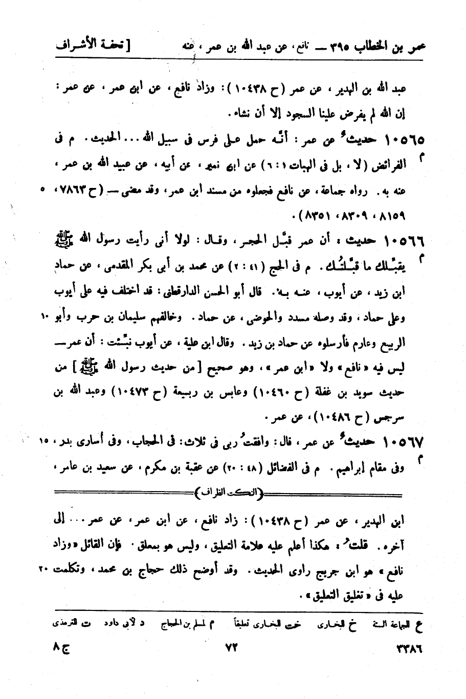 م في الفرائض (لا، بل في الهبات 1: 6) عن ابن نمير، عن أبيه، عن عبيد الله بن عمر، عنه به. رواه جماعة عن نافع فجعلوه من مسند ابن عمر، وقد مضى - (ح 7863، 8159، 8309، 8351) .