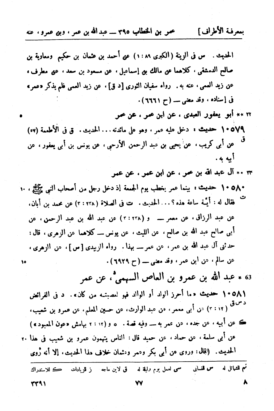 ت في الصلاة (238: 3) عن محمد بن أبان، عن عبد الرزاق، عن معمر - و (238: 3) عن عبد الله بن عبد الرحمن، عن أبي صالح عبد الله بن صالح، عن الليث، عن يونس - كلاهما عن الزهري، قال: حدثني آل عبد الله بن عمر، عن عمر - بهذا. رواه الزبيدي [س] ، عن الزهري، عن سالم، عن ابن عمر، وقد مضى - (ح 6929) .