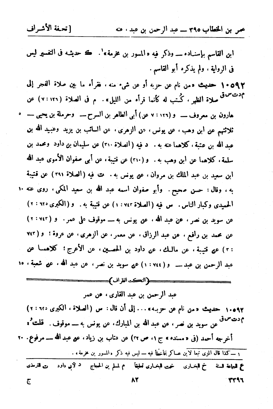 س فيه (الصلاة 743: 1) عن قتيبة به. و (الكبرى 625: 2) عن سويد بن نصر، عن عبد الله، عن يونس به - موقوفا على عمر. و (743: 2) عن محمد بن رافع، عن عبد الرزاق، عن معمر، عن الزهري، عن عروة؛ و (743: 3) عن قتيبة، عن مالك، عن داود بن الحصين، عن الأعرج؛ كلاهما عن عبد الرحمن بن عبد - و (744: 1) عن سويد بن نصر، عن عبد الله، عن شعبة، -[83]- عن سعد بن إبراهيم، عن حميد بن عبد الرحمن (ح 10436) - كلاهما عن عمر به - موقوف.