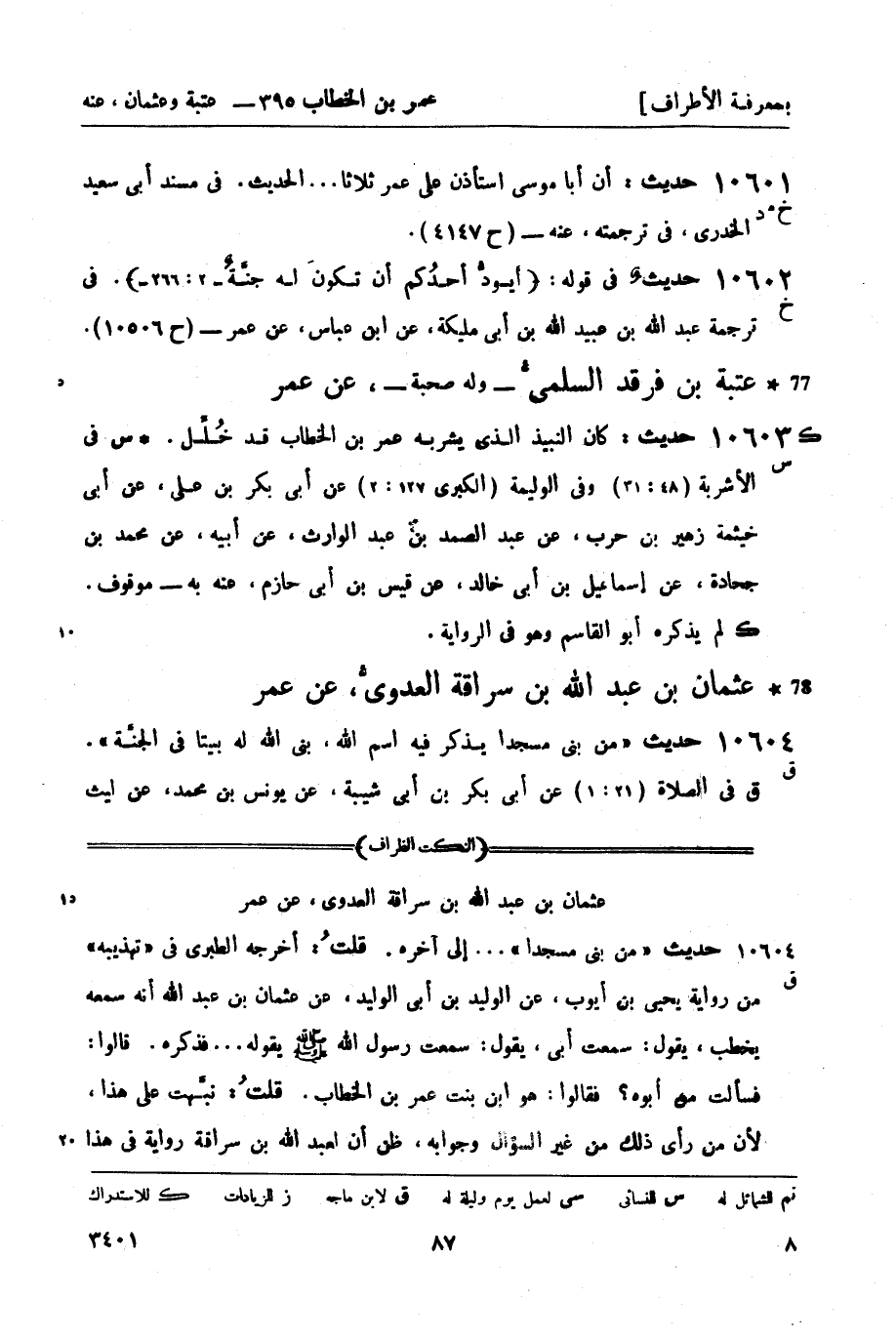 10601 -[خ م د] حديث: أن أبا موسى استأذن على عمر ثلاثاً ... الحديث. في مسند أبي سعيد الخدري، في ترجمته عنه - (ح 4147) .