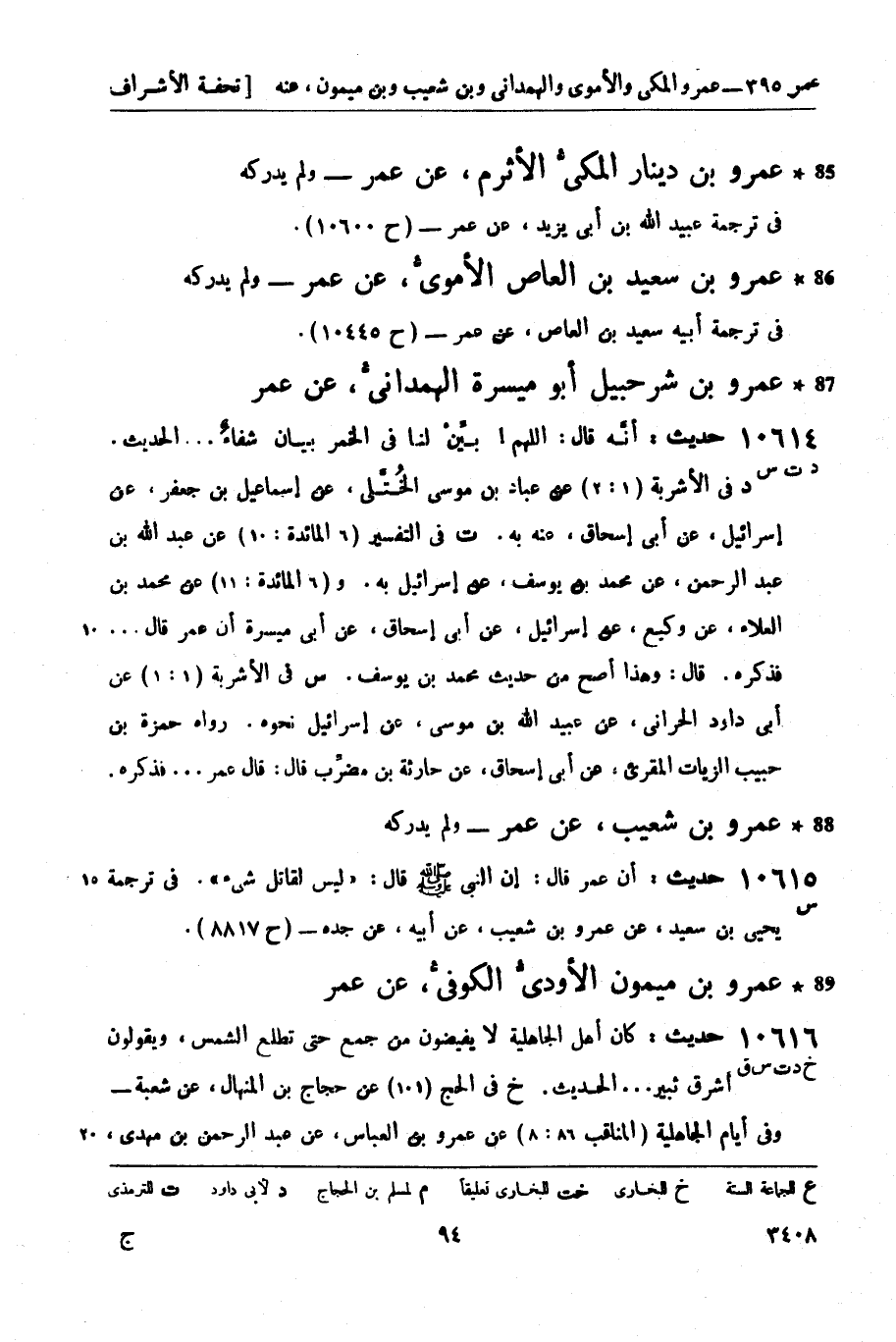 عمرو بن دينار المكيُّ الأثرم , عن عمر - ولم يدركه في ترجمة عبيد الله بن أبي يزيد , عن عمر (ح 10600)