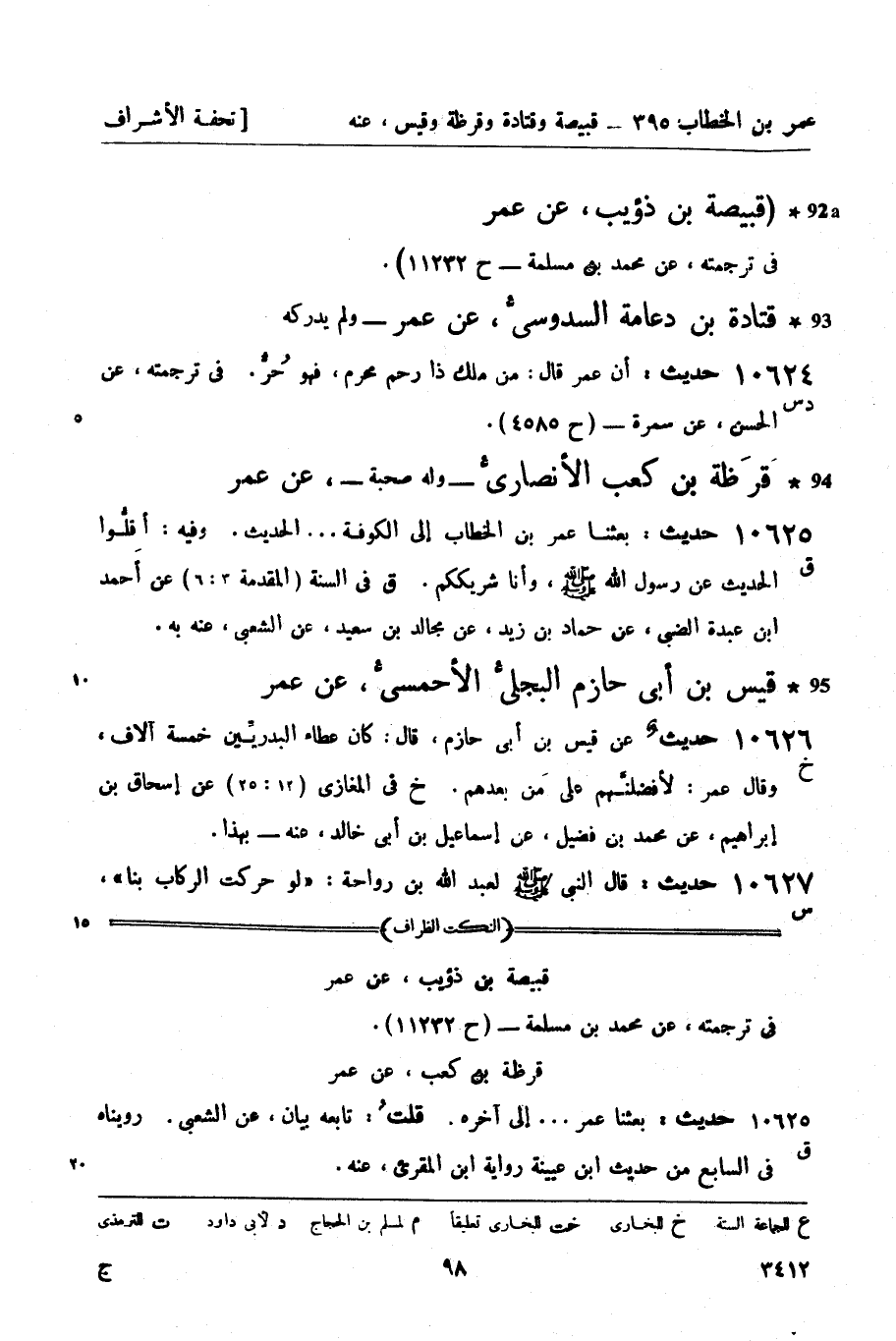 a 92 (قبيصة بن ذؤيب، عن عمر في ترجمته عن محمد بن مسلمة - ح 11232)