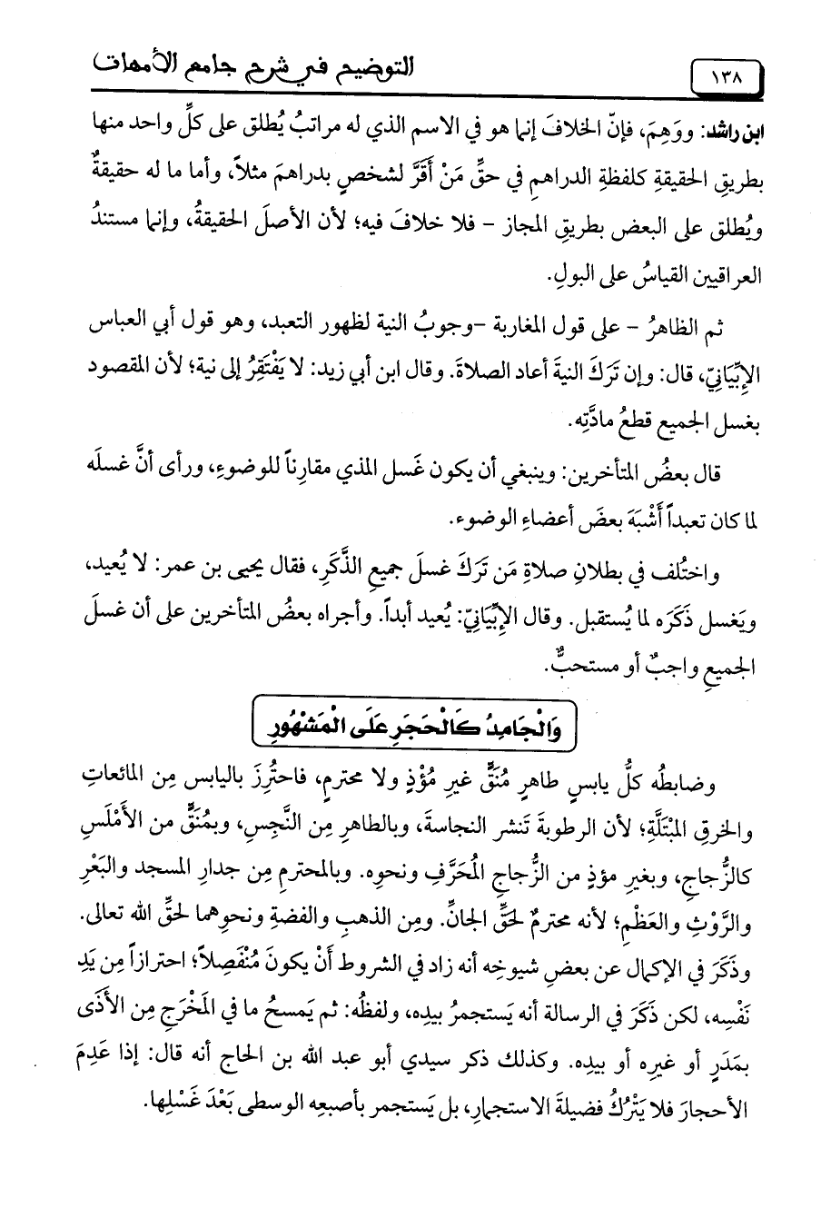 وَالْجَامِدُ كَالْحَجَرِ عَلَى الْمَشْهُورِ