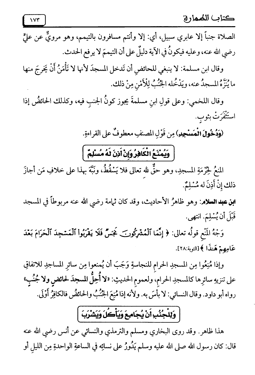 (وَدُخُولَ الْمَسْجِدِ) مِن قَوْلِ المصنفِ معطوفٌ على القراءةِ.