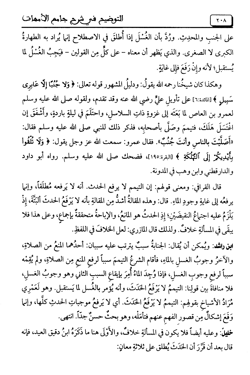 خليلٌ: وعليه أيضاً فلا يكون في المسألةِ خلافٌ، والأَوْلَى هنا ما ذَكَرَه ابنُ دقيق العيد، فإنه قال بعد أن قَرَّرَ أن الحَدَثَ يُطلق على ثلاثةِ معانٍ: