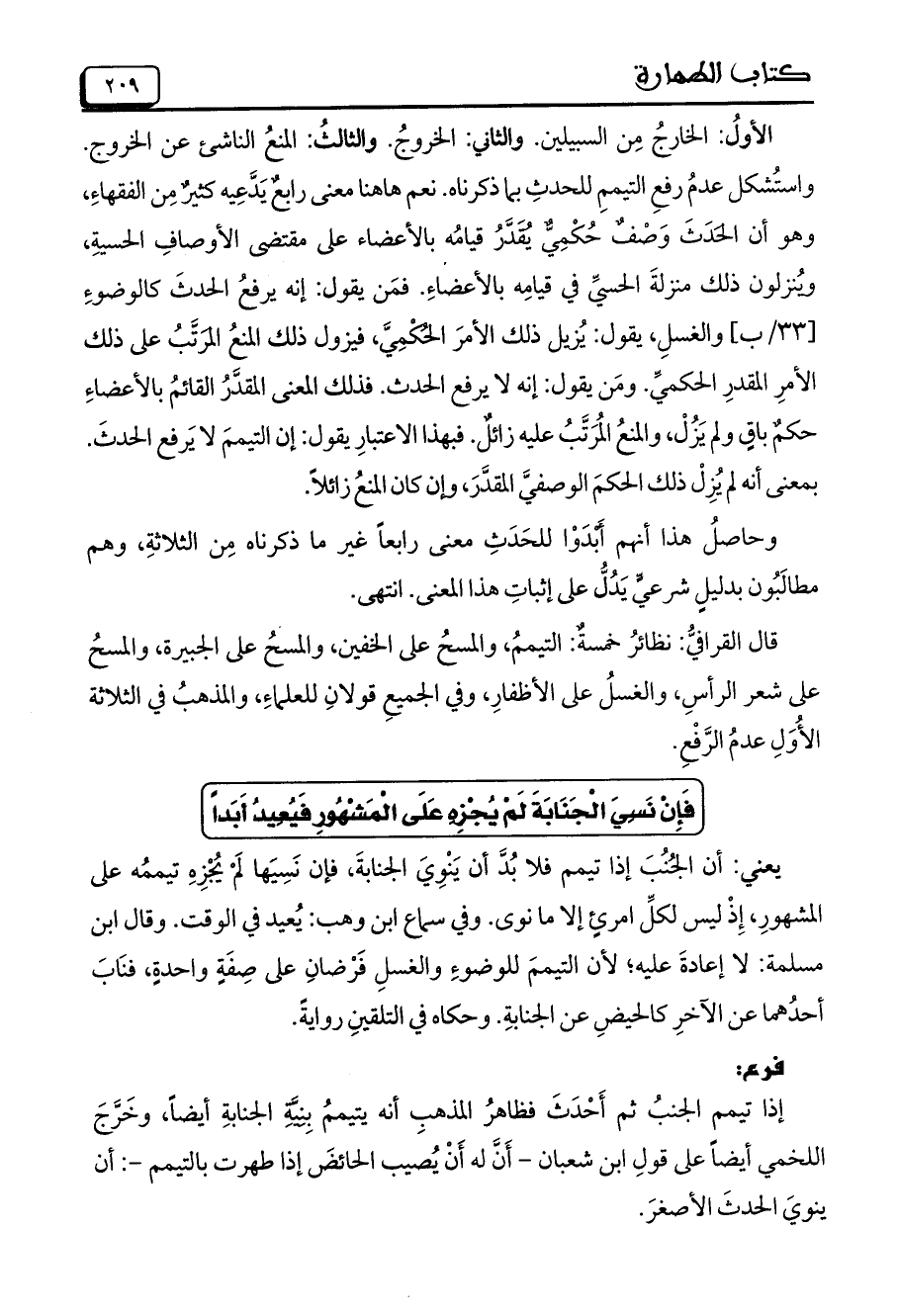الأولُ: الخارجُ مِن السبيلين. والثاني: الخروجُ. والثالثُ: المنعُ الناشئ عن الخارج. واستُشكل عدمُ رفعِ التيممِ للحدثِ بما ذكره. نعم هاهنا معنى رابعٌ يَدَّعِيه كثيرٌ مِن الفقهاءِ، وهو أن الحَدَثَ وَصْفٌ حُكْمِيٌّ يُقَدَّرُ قيامُه بالأعضاء على مقتضى الأوصافِ الحسيةِ، ويُنزلون ذلك منزلةَ الحسيِّ في قيامِه بالأعضاءِ. فمَن يقول: إنه يرفعُ الحدثَ كالوضوءِ [33/ب] والغسلِ، يقول: يُزيل ذلك الأمرَ الحُكْمِيَّ، فيزول ذلك المنعُ المرَتَّبُ على ذلك الأمرِ المقدرِ الحكميِّ. ومَن يقول: إنه لا يرفع الحدث. فذلك المعنى المقدَّرُ القائمُ بالأعضاءِ حكمٌ باقٍ ولم يَزُلْ، والمنعُ المُرَتَّبُ عليه زائلٌ. فبهذا الاعتبارِ يقول: إن التيممَ لا يَرفع الحدثَ. بمعنى أنه لم يُزِلْ ذلك الحكمَ الوصفيَّ المقدَّرَ، وإن كان المنعُ زائلاً.