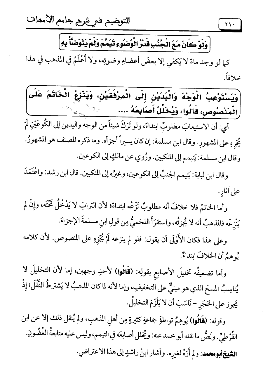 وقوله: (قَالُوا) يُوهِمُ تواطؤَ جماعةٍ كثيرةٍ مِن أهلِ المذهبِ، ولم يُنقل ذلك إلا عن ابن القُرْطِيِّ. ونص ما نقله أبو محمد عنه: ويُخلل أصابعَه في التيمم، وليس عليه متابعةُ الغُضُونِ.