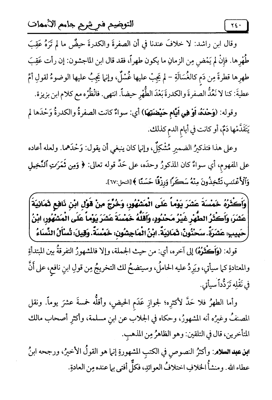 ابن عبد السلام: وأكثرُ النصوص في الكتب الْمَشْهُورِةِ إنما هو القولُ الأخيرُ، ورجحه ابنُ عطاء الله. ومنشأُ الخلافِ اختلافُ العوائدِ، فكلٌّ أفتى بما عنده مِن العادةِ.