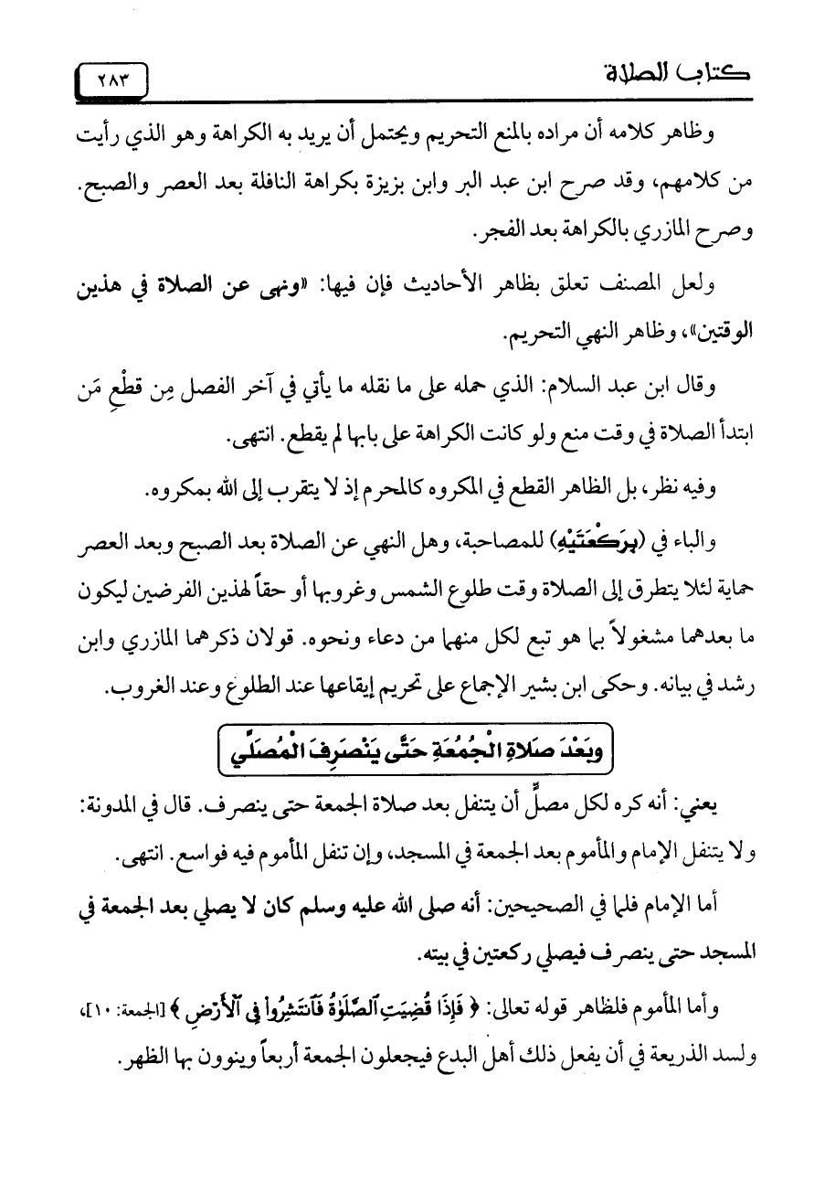وَبَعْدَ صَلاةِ الْجُمُعَةِ حَتَّى يَنْصَرِفَ الْمُصَلَّي