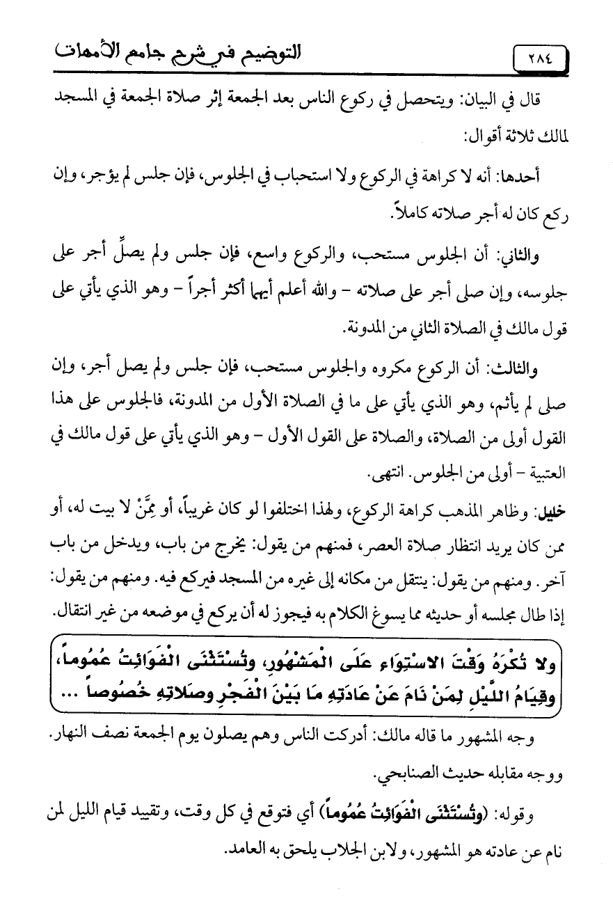 قال في البيان: ويتحصل في ركوع الناس بعد الجمعة إثر صلاة الجمعة في المسجد لمالك ثلاثة أقوال: