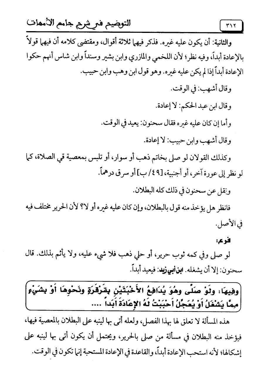 وفِيهَا: ولَوْ صَلَّى وهُوَ يُدَافِعُ الأَخْبَثَيْنِ بِقَرْقَرَةٍ ونَحْوِهَا أَوْ بِشَيْءٍ مِمَّا يَشْغَلُ أَوْ يُعَجِّلُ أَحْبَبْتُ لَهُ الإِعَادَةَ أبداً ......
