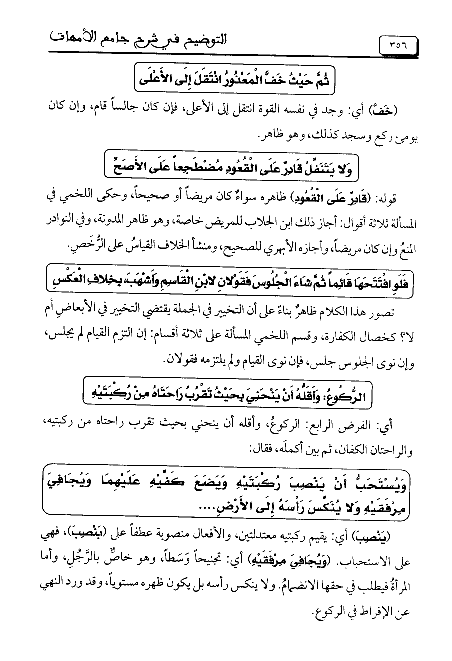 الرُّكُوعُ: وَأَقَلُّهُ أَنْ يَنْحَنِيَ بِحَيْثُ تَقْرُبُ رَاحَتَاهُ مِنْ رُكْبَتَيْهِ