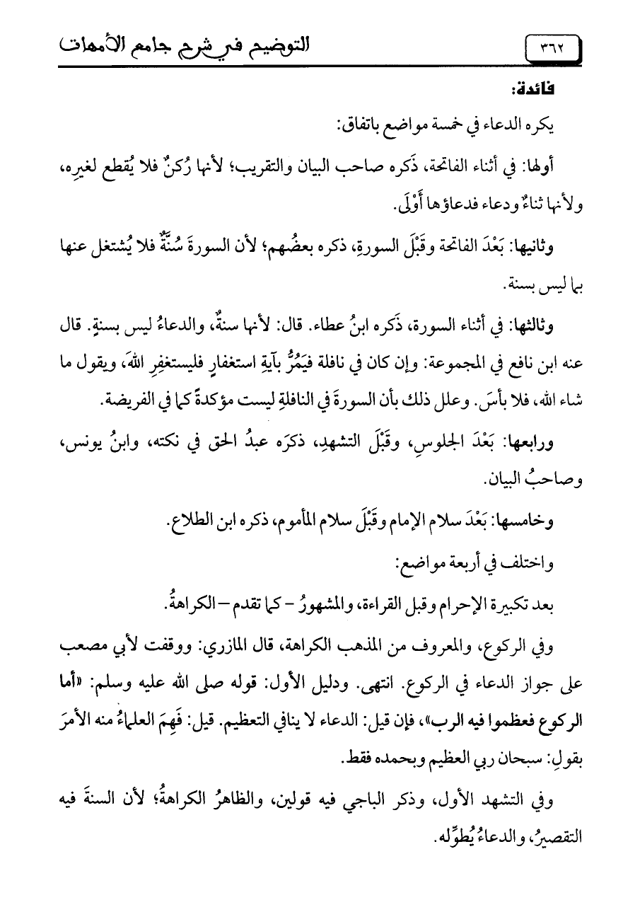 وثالثها: في أثناء السورة، ذكره ابنُ عطاء. قال: لأنها سنةٌ، والدعاءُ ليس بسنةٍ. قال عنه ابن نافع في المجموعة: وإن كان في نافلة فيَمُرُّ بآيةِ استغفارِ فليستغفِرِ اللهَ، ويقول ما شاء الله، فلا بأسَ. وعلل ذلك بأن السورةَ في النافلةِ ليست مؤكدةً كما في الفريضة.