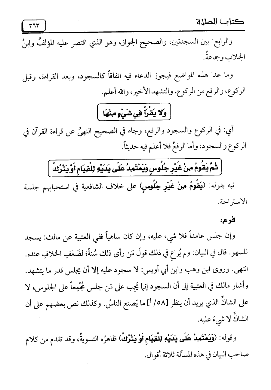 والرابع: بين السجدتين، والصحيح الجواز، وهو الذي اقتصر عليه المؤلفُ وابنُ الجلاب وجماعةٌ.