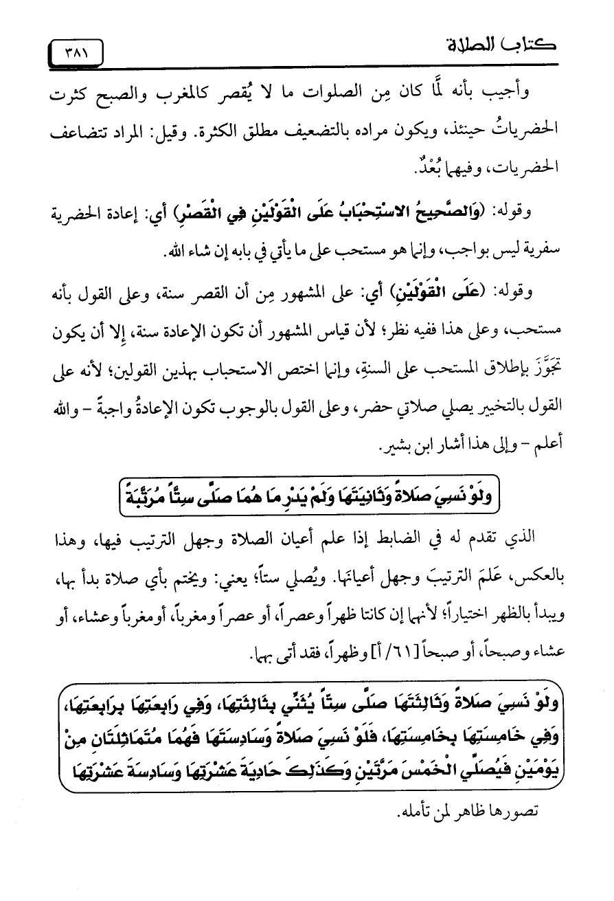 وقوله: (وَالصَّحِيحُ الاسْتِحْبَابُ عَلَى الْقَوْلَيْنِ فِي الْقَصْرِ) أي: إعادة الحضرية سفرية ليس بواجب، وإنما هو مستحب على ما يأتي في بابه إن شاء الله.