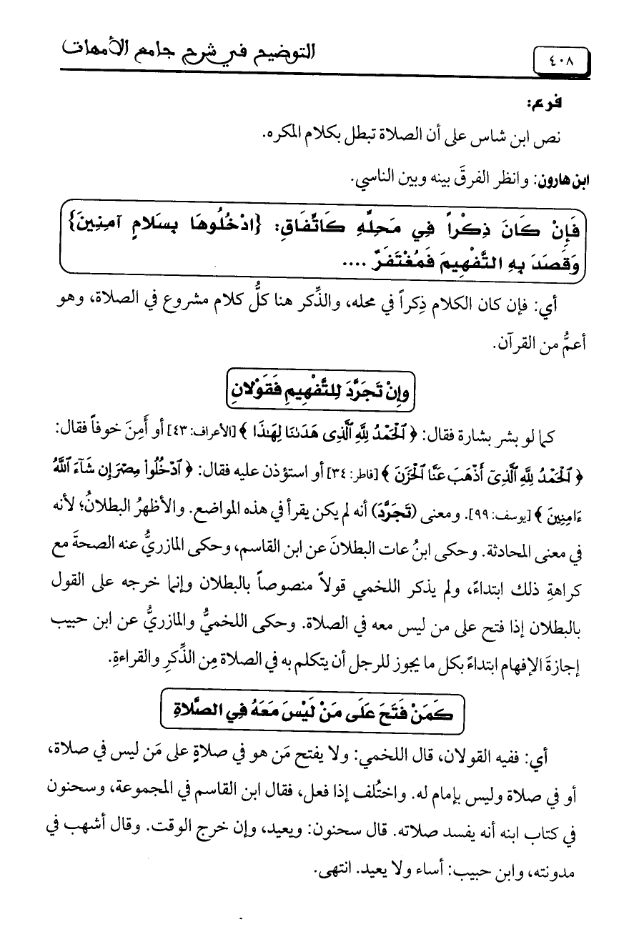 نص ابن شاس على أن الصلاة تبطل بكلام المكره.