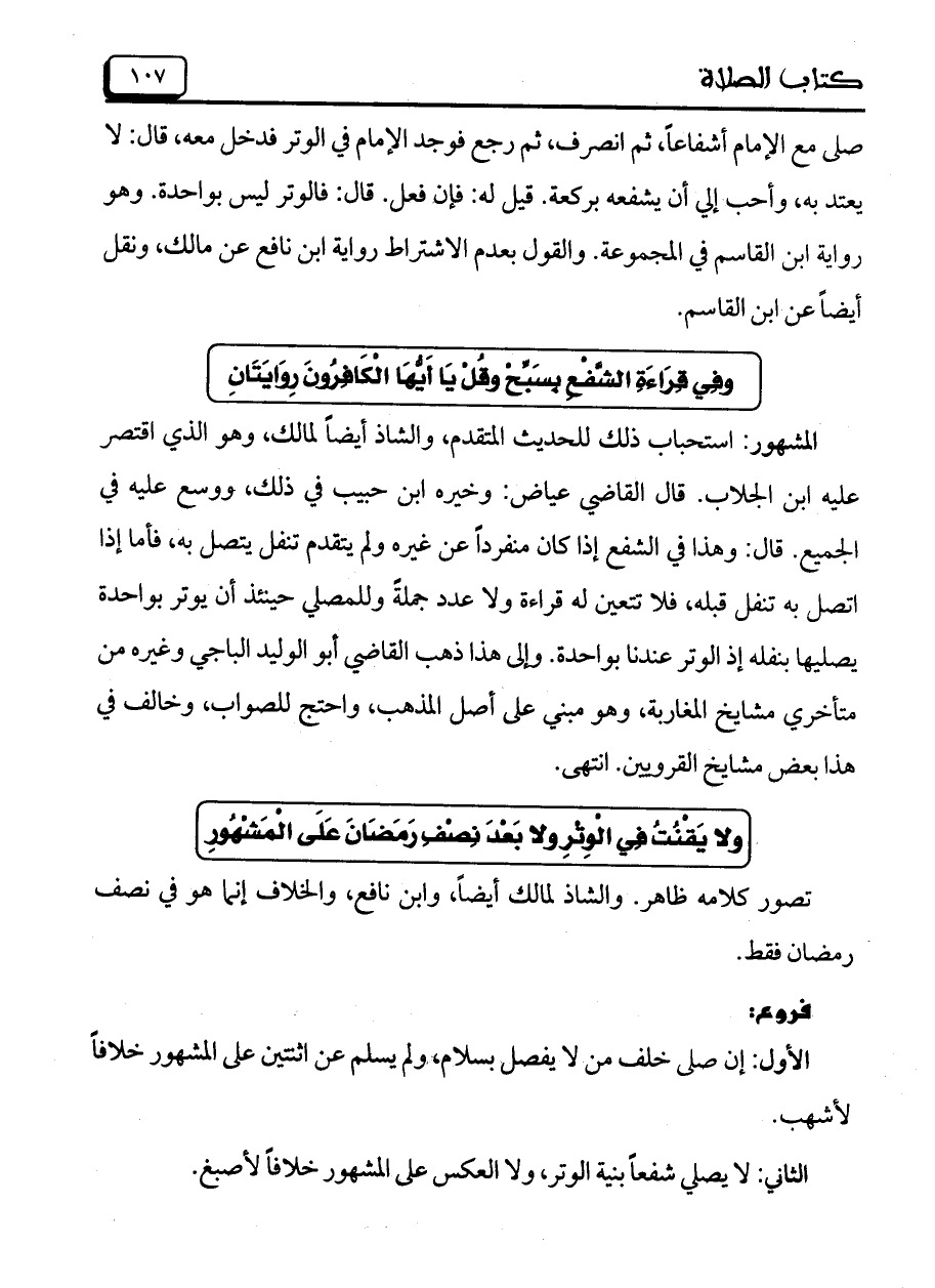 وفِي قِرَاءَةِ الشَّفْعِ بسَبِّحْ وقُلْ يَا أَيُّهَا الْكَافِِرُونَ رِوَايَتَانِ