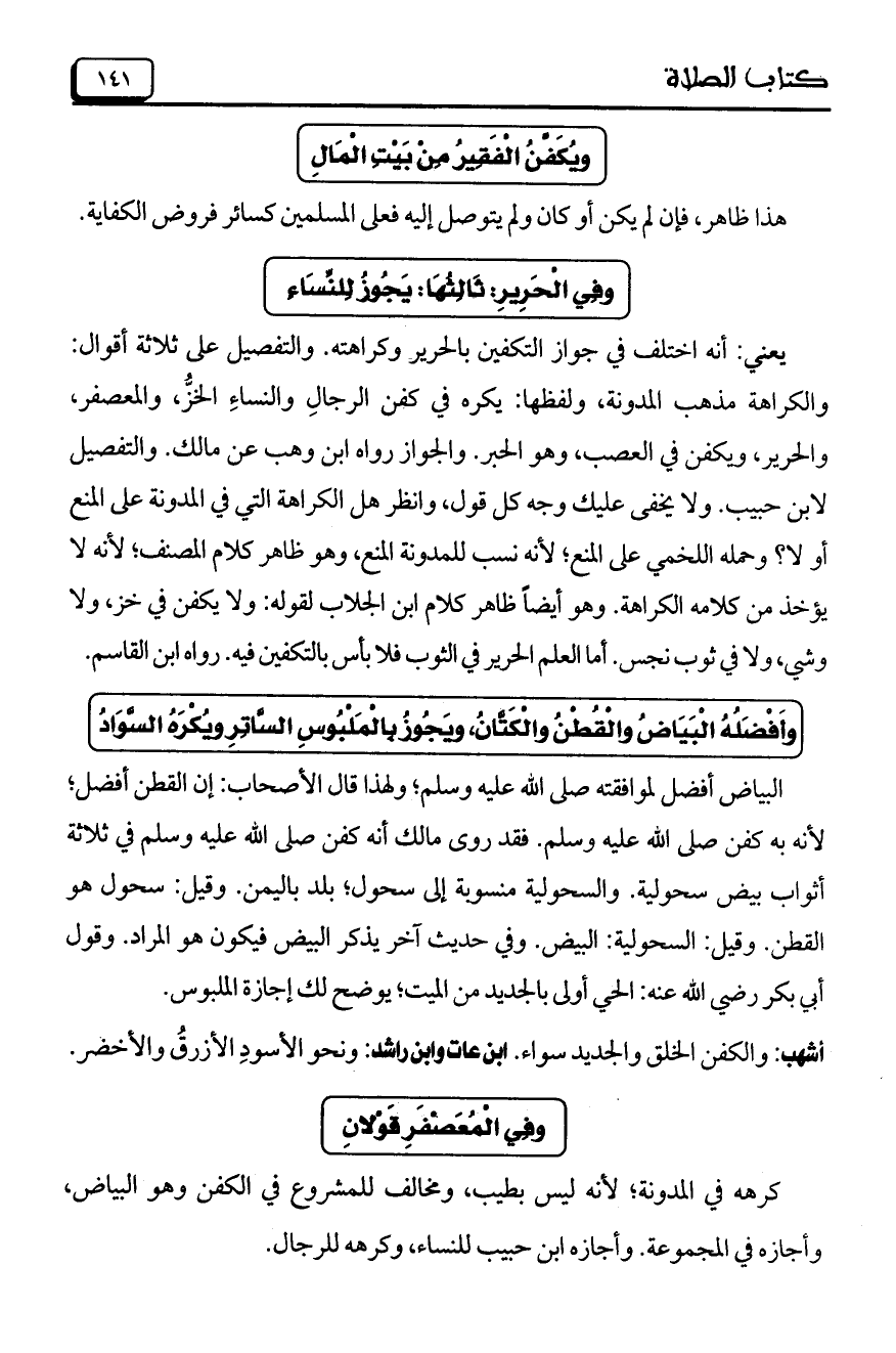 ويُكَفَّنُ الْفَقِيرُ مِنْ بَيْتِ الْمَالِ