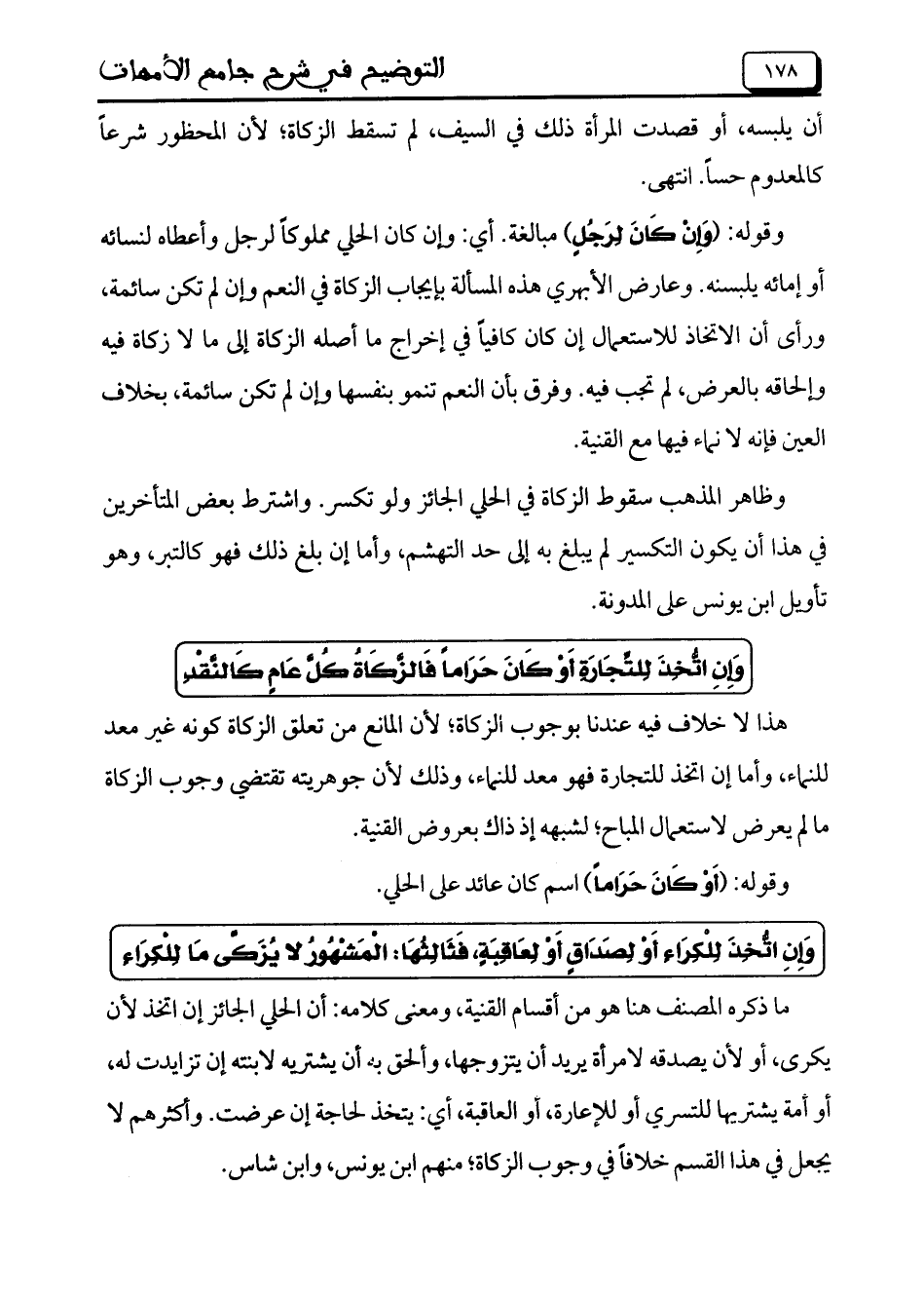 ما ذكره المصنف هنا هو من أقسام القنية، ومعنى كلامه: أن الحلي الجائز إن اتخذ لأن يكرى، أو لأن يصدقه لامرأة يريد أن يتزوجها، وألحق به أن يشتريه لابنته إن تزايدت له، أو أمة يشتريها للتسري أو للإعارة، أو العاقبة، أي: يتخذ لحاجة إن عرضت. وأكثرهم لا يجعل في هذا القسم خلافاً في وجوب الزكاة؛ منهم ابن يونس، وابن شاس.