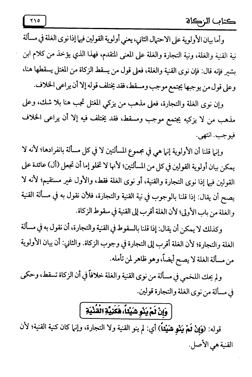 وكذلك لا يمكن أن يقال: إذا قلنا بالسقوط في القنية والتجارة، أن نقول به في مسألة الغلة والتجارة؛ لأن الغلة أقرب إلى التجارة في وجوب الزكاة. والثاني: أن بيان الأولوية من مسألة الغلة لا يصح أيضاً، وهو ظاهر لمن تأمله.