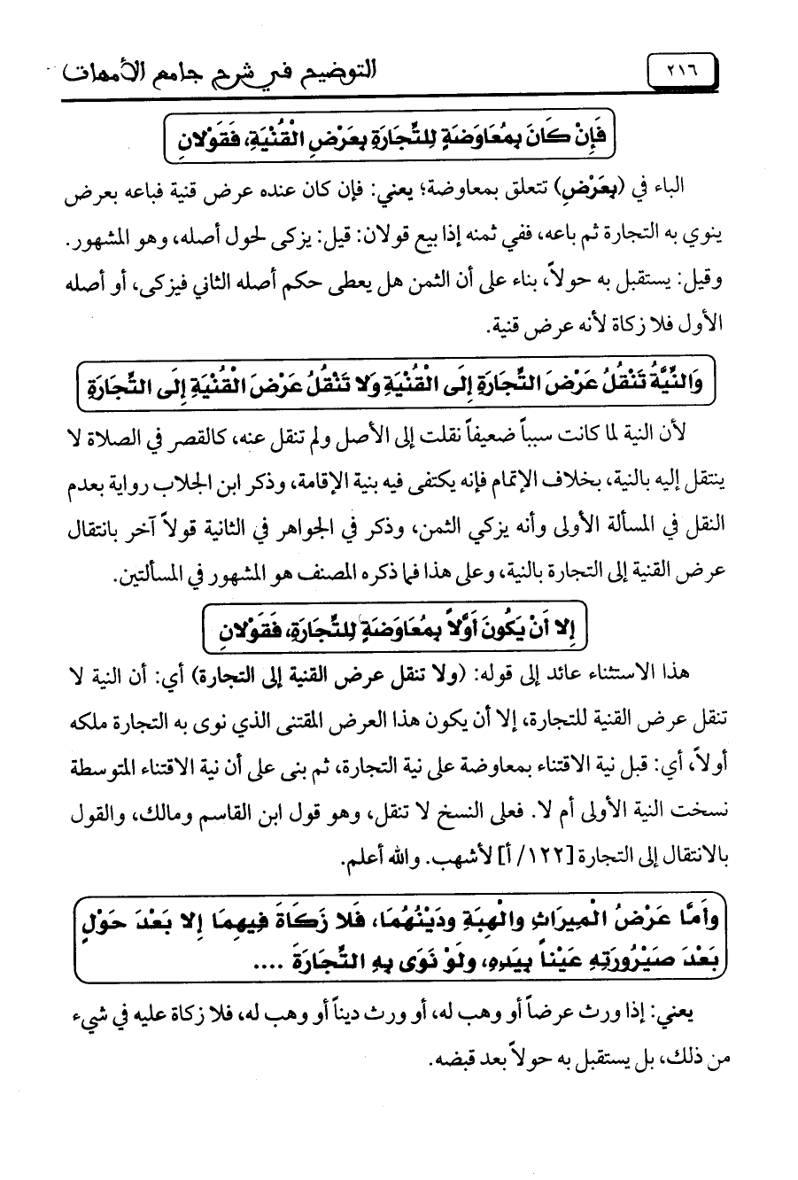 وَالنِّيَّة تَنْقُلُ عَرْضَ التِّجَارَةِ إِلَى الْقُنْيَةِ وَلا تَنْقُلُ عَرْضَ الْقُنْيَةِ إِلَى التِّجَارَةِ