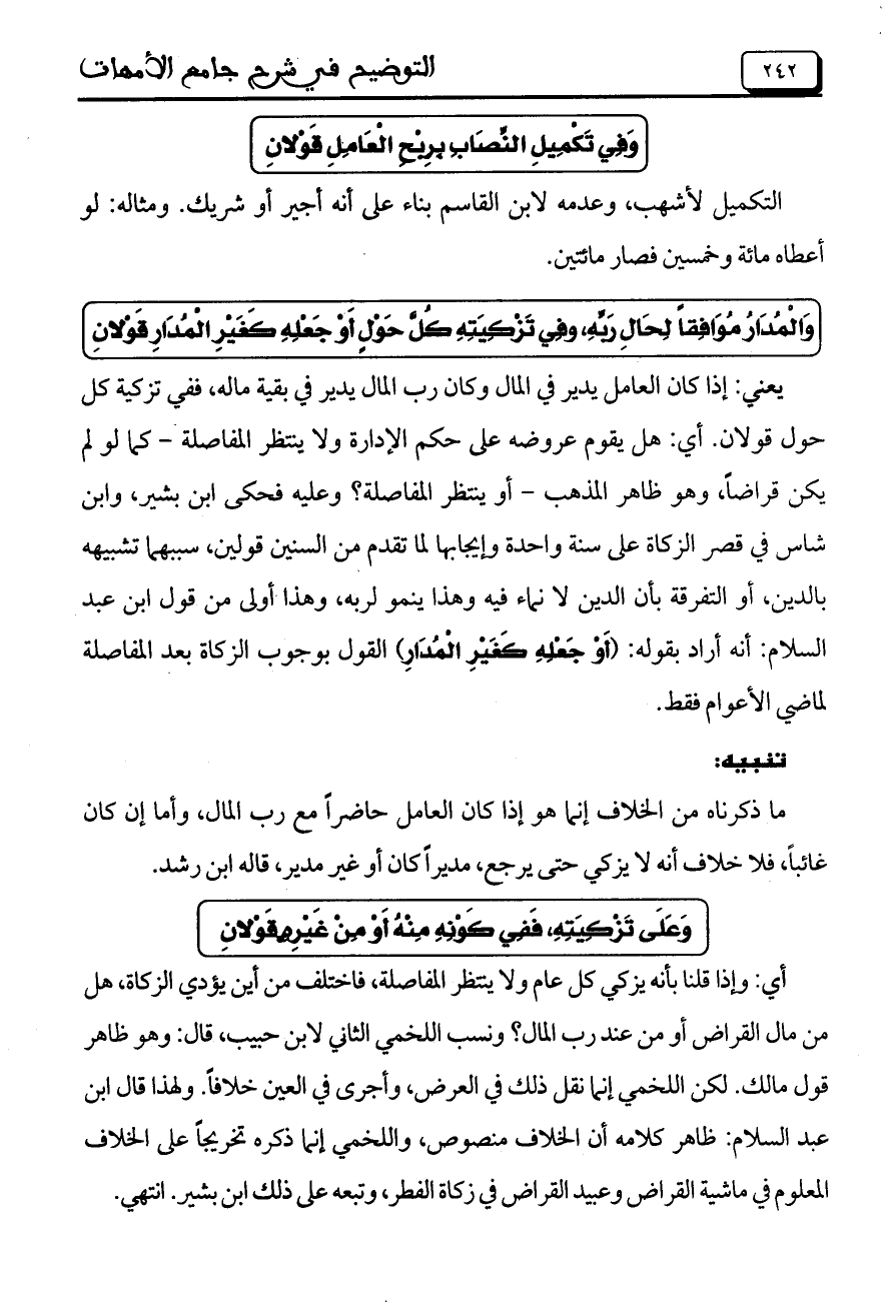 وَفِي تَكْمِيلِ النِّصَابِ بِرِبْحِ الْعَامِلِ قَوْلانِ