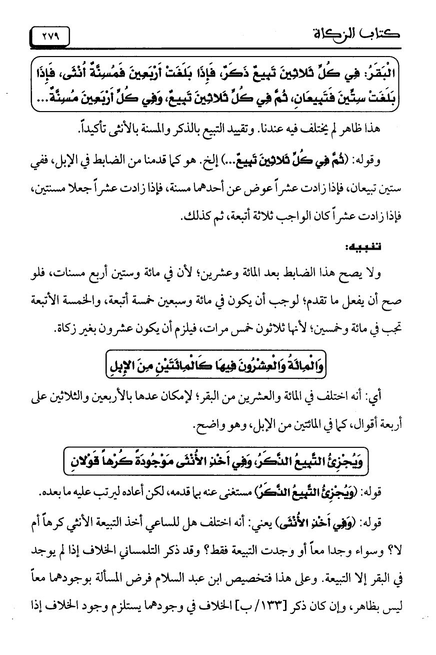 الْبَقَرُ: فِي كُلِّ ثَلاثِينَ تَبِيعٌ ذَكَرٌ، فَإِذَا بَلَغَتْ أَرْبَعِينَ فَمُسِنَّةٌ أُنْثَى، فَإِذَا بَلَغَتْ سِتِّينَ فَتَبيعَانِ، ثُمَّ فِي كُلِّ ثَلاثِينَ تَبِيعٌ، وَفِي كُلِّ أَرْبَعِينَ مُسِنَّةٌ ....