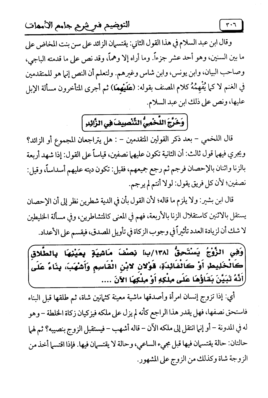 وَفِي الزَّوْجُ يَسْتَحِقُّ [138/ ب] نِصْفَ مَاشِيَةِ بِعَيْنِهَا بِالطَّلاقِ كَالْخَلِيطِ أَوْ كَالْفَائِدَةِ، قَوْلانِ لابْنِ الْقَاسِمِ وَأَشْهَبَ، بِنَاءً عَلَى أَنَّهُ تَبَيَّنَ بَقَاؤُهَا عَلَى مِلْكِهِ أَوْ مِلْكِهَا الآنَ ...