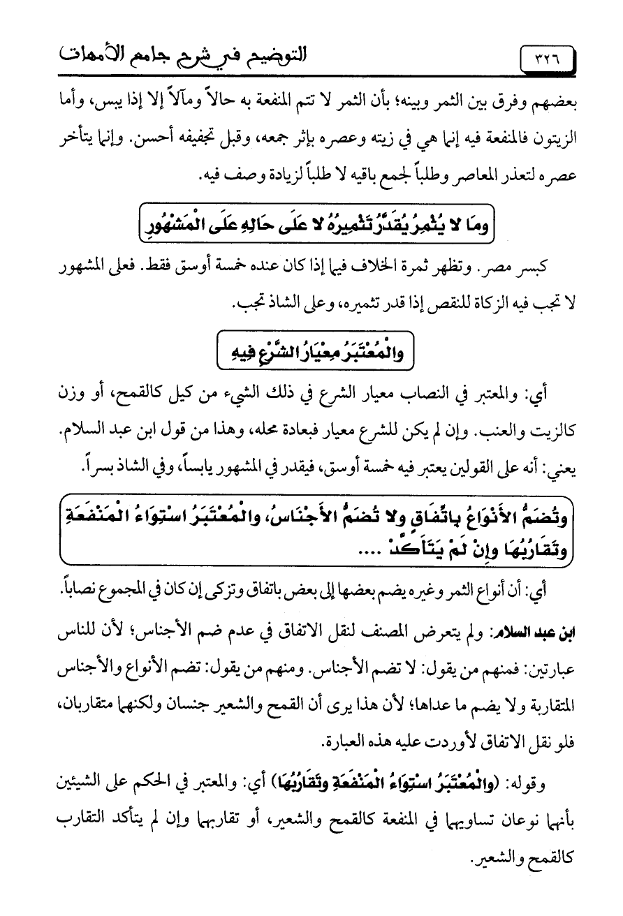 وتُضَمُّ الأَنْوَاعُ بِاتِّفَاقٍ ولا تُضَمُّ الأَجْنَاسُ، والْمُعْتَبَرُ اسْتِوَاءُ الْمَنْفَعَةِ وتَقَارُبُهَا وإِنْ لَمْ يَتَأَكَّدْ ...