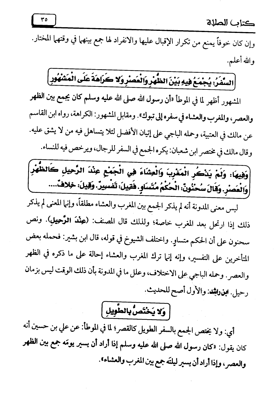 السَّفَرُ: يُجْمَعُ فِيهِ بَيْنَ الظُّهْرِ وَالْعَصْرِ وَلا كَرَاهَةَ عَلَى الْمشْهُورِ