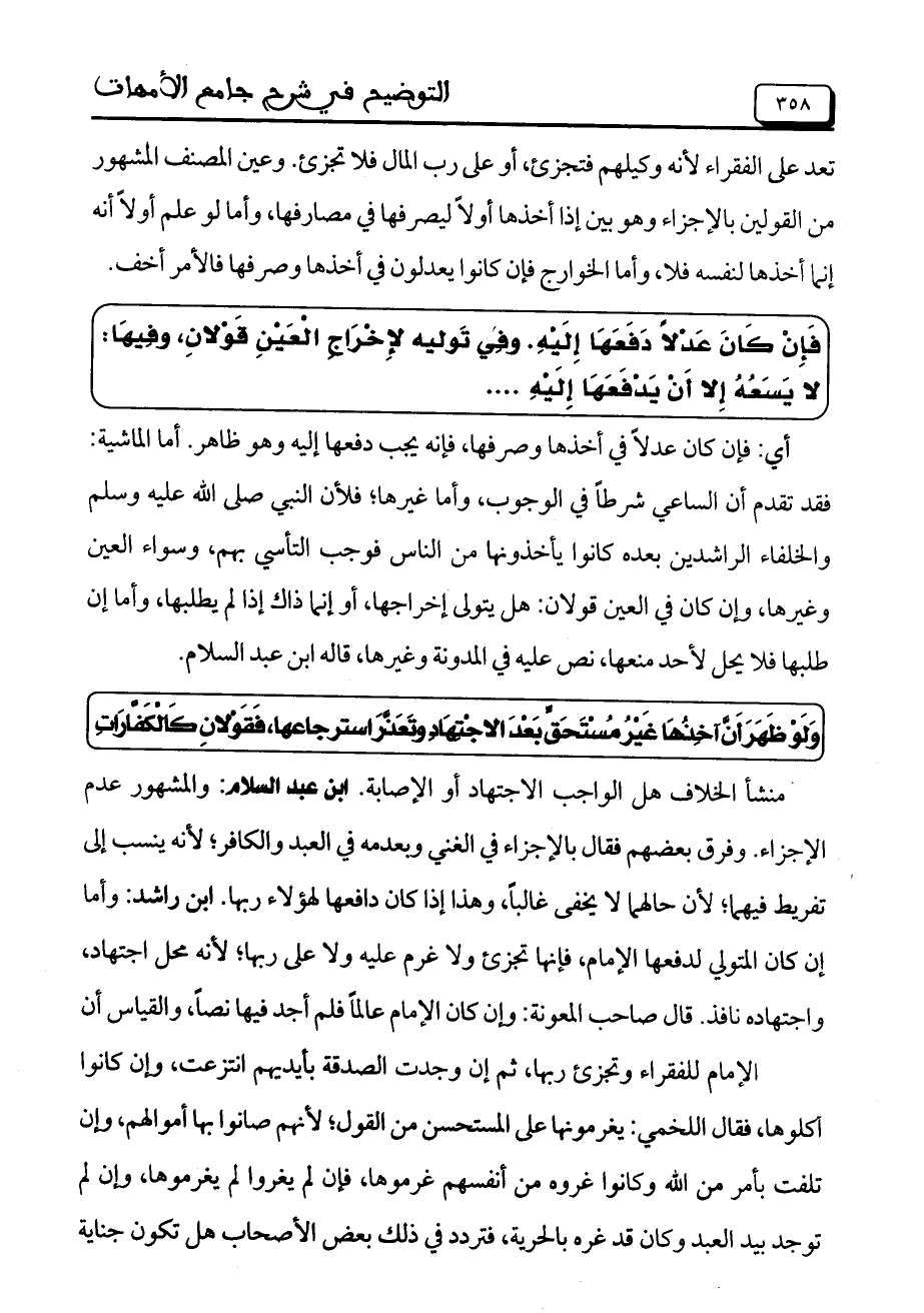 فَإِنْ كَانَ عَدْلاً دَفَعَهَا إِلَيْهِ. وَفِي تَوليه لإِخْرَاجِ الْعَيْنِ قَوْلانِ، وفِيهَا: لا يَسَعُهُ إِلا أَنْ يَدْفَعَهَا إِلَيْهِ ...