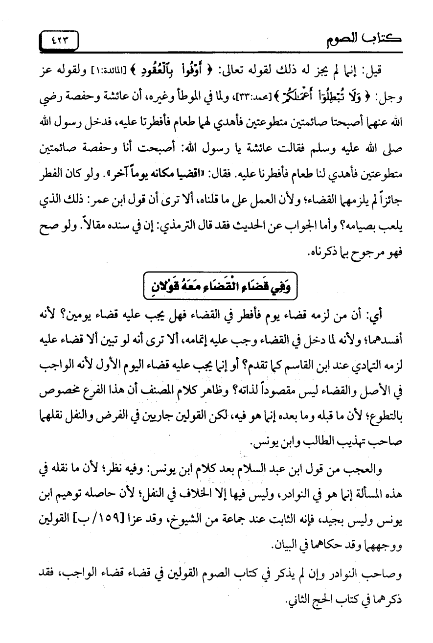 وصاحب النوادر وإن لم يذكر في كتاب الصوم القولين في قضاء قضاء الواجب، فقد ذكرهما في كتاب الحج الثاني.