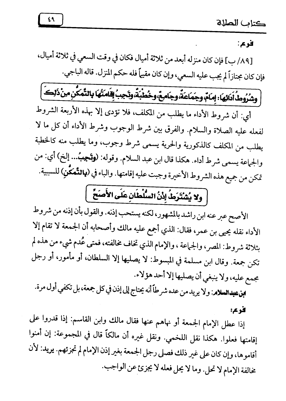 ابن عبد السلام: ولا يريد من عده شرطاً أنه يحتاج إلى إذن في كل جمعة، بل تكفي أول مرة.