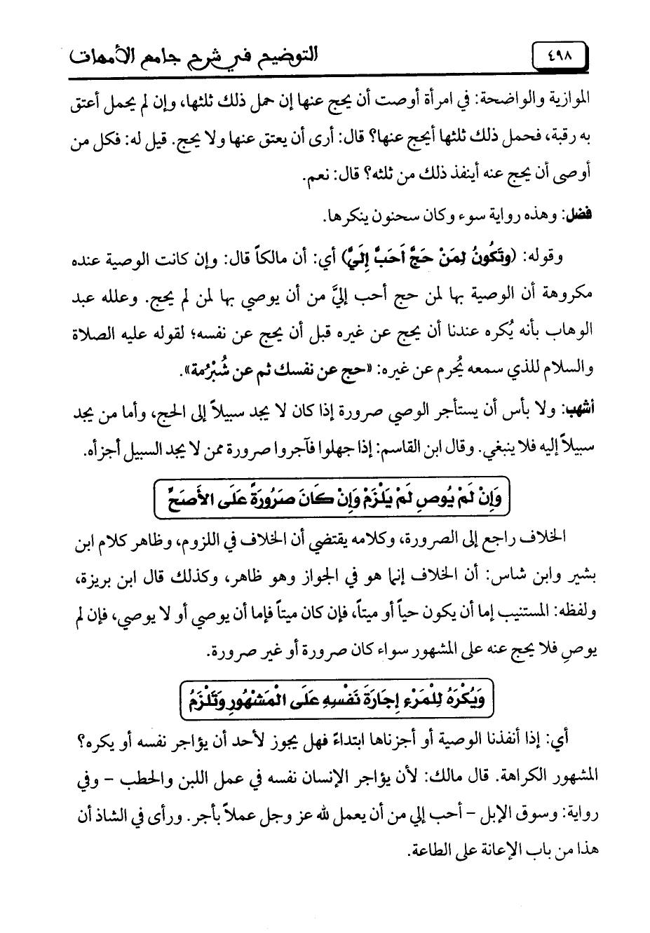 وقوله: (وتَكُونُ لِمَنْ حَجَّ أَحَبَّ إِلَيَّ) أي: أن مالكاً قال: وإن كانت الوصية عنده مكروهة أن الوصية بها لمن حج أحب إليَّ من أن يوصي بها لمن لم يحج. وعلله عبد الوهاب بأنه يُكره عندنا أن يحج عن غيره قبل أن يحج عن نفسه؛ لقوله عليه الصلاة والسلام للذي سمعه يُحرم عن غيره: "حج عن نفسك ثم عن شُبْرُمة".