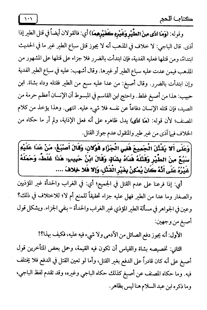 وَعَلَى أَلا يَقْتُلَ الْجَمِيعَ فَفِي الْجَزَاءِ قَوْلانِ، وَقَالَ أَصْبَغُ: مَنْ عَدَا عَلَيْهِ سَبُعٌ مِنَ الطَّيْرِ وَقَتَلَهُ فَدَاهُ بِشَاةٍ، وَقَالَ ابْنُ حَبِيبٍ: هَذَا غَلَطٌ، وَحَمَلَهُ غَيْرُهُ عَلَى أَنَّهُ كَانَ يُمْكِنُ بِغَيْرِ الْقَتْلِ، وَإلا فَلا خِلافَ ....