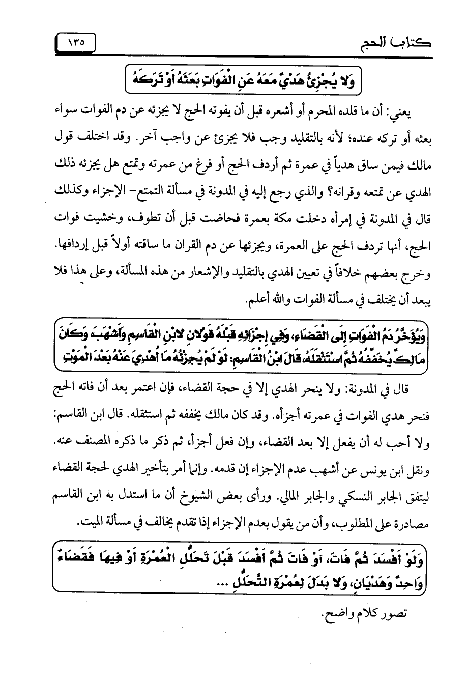 يعني: أن ما قلده المحرم أو أشعره قبل أن يفوته الحج لا يجزئه عن دم الفوات سواء بعثه أو تركه عنده؛ لأنه بالتقليد وجب فلا يجزئ عن واجب آخر. وقد اختلف قول مالك فيمن ساق هديا في عمرة ثم أردف الحج أو فرغ من عمرته وتمتع هل يجزئه ذلك الهدي عن تمتعه وقرانه؟ والذي رجع إليه في المدونة في مسألة التمتع – الإجزاء وكذلك قال في المدونة في امرأة دخلت مكة بعمرة فحاضت قبل أن تطوف، وخشيت فوات الحج، أنها تردف الحج على العمرة، ويجزئها عن دم القران ما ساقته أولا قبل إردافها. خرج بعضهم خلافاً في تعيين الهدي بالتقليد والإشعار من هذه المسألة، وعلى هذا فلا يبعد أن يختلف في مسألة الفوات والله أعلم.